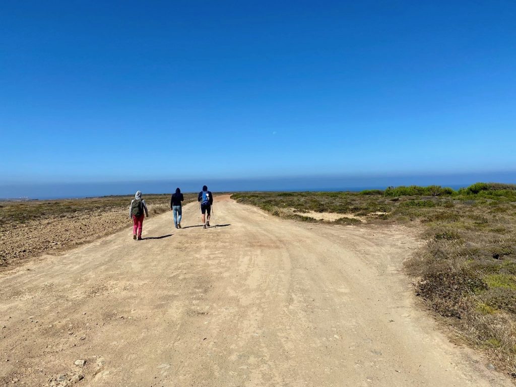 We continue from Odeceixe beach, this time on the southern shore, in the lands of the Algarve. We set off to walk further kilometers of fishermen trails, crossing irrigated fields and the coastal heathland, on the way to Arrifana….